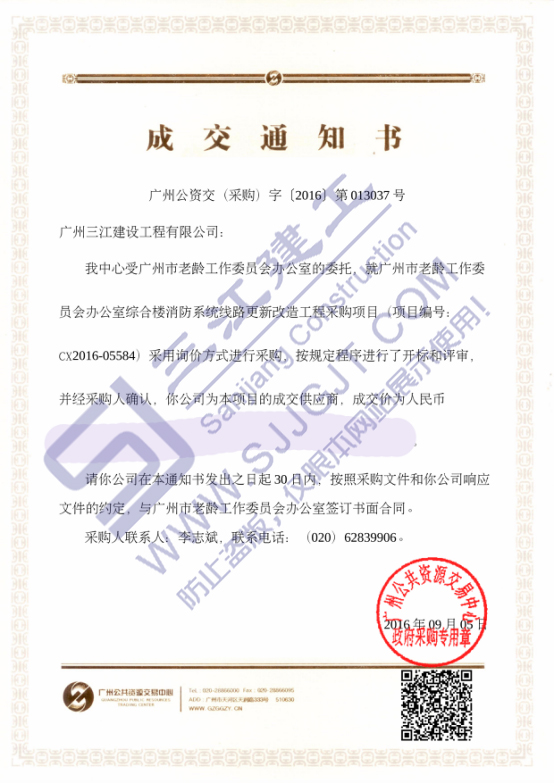 熱烈祝賀我司中標廣州市老齡工作委員會辦公室對廣州市老齡工作委員會辦公室綜合樓消防系統(tǒng)線路更新改造工程項目