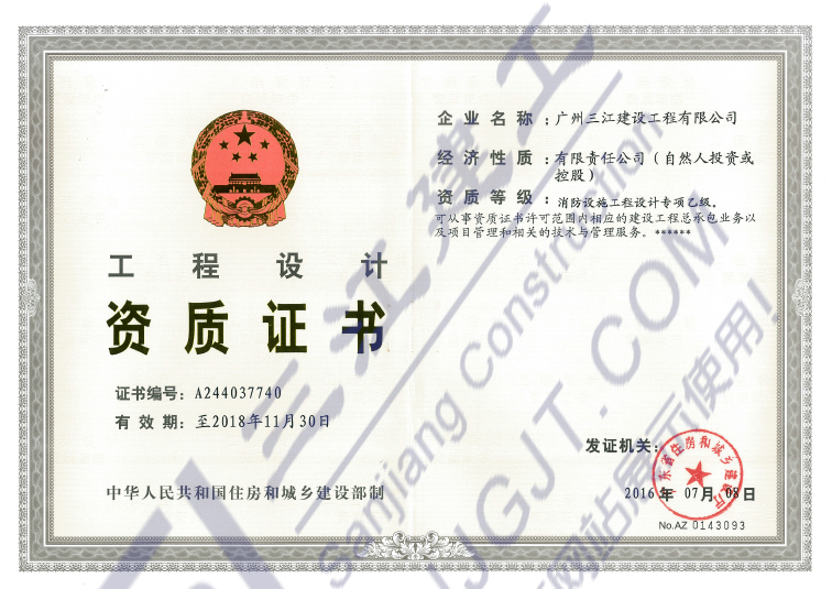 工程設(shè)計資質(zhì)證書