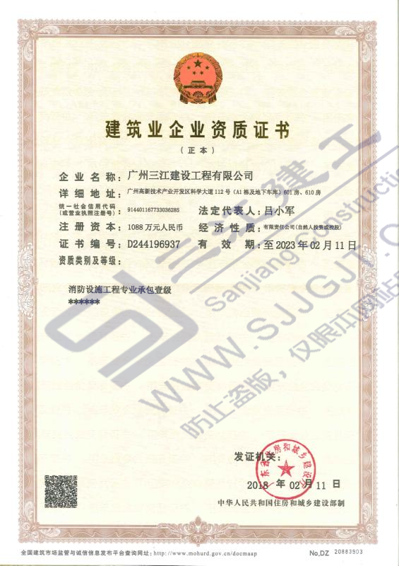 建筑業(yè)企業(yè)資質(zhì)證書【消防壹級】