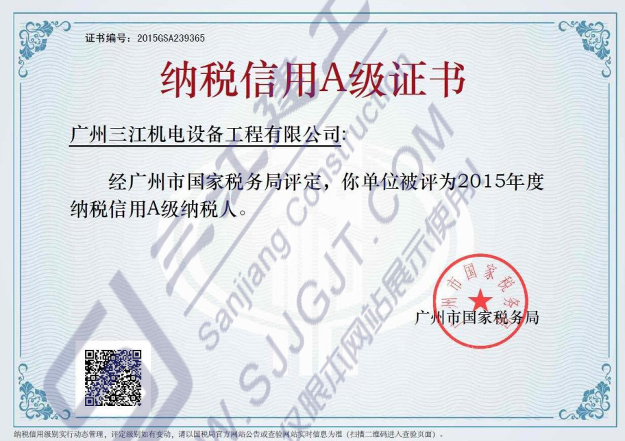 納稅信用A級證書