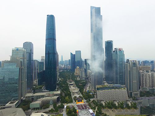 昨日活動(dòng)中,廣州周大福國(guó)際金融中心(東塔)消防演練無(wú)疑是奪人眼球的重頭戲。廣州東塔是廣州又一地標(biāo)性建筑,記者從演練現(xiàn)場(chǎng)看到,東塔主塔樓17樓有滾黑煙從大樓直噴窗外,大量濃煙蔓延,消防官兵正在組織多名“被困”群眾疏散。此次演練不僅是對(duì)廣東消防部隊(duì)高層滅火救援專業(yè)隊(duì)實(shí)戰(zhàn)能力的一次檢驗(yàn),更是對(duì)建筑消防設(shè)施、消防電梯應(yīng)用、通信保障等諸多課題和研究成果的一次“實(shí)打?qū)崱钡倪\(yùn)用。