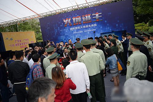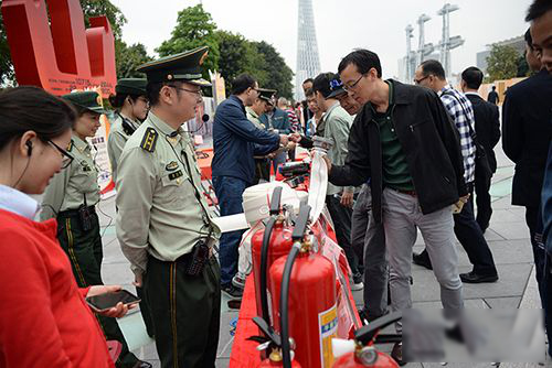 今年11月9日是全國(guó)第26個(gè)“119消防日”。9日上午,廣東省政府、廣州市政府在廣州市天河區(qū)花城廣場(chǎng)隆重舉行2016年“廣東省·廣州市‘119消防安全宣傳月’活動(dòng)啟動(dòng)儀式”。廣東省人大副主席羅娟,廣東省副省長(zhǎng)、公安廳長(zhǎng)李春生,公安部消防局副政委詹壽旺,廣州市副市長(zhǎng)、市公安局局長(zhǎng)楊江華,省公安消防總隊(duì)總隊(duì)長(zhǎng)王郭社、政委黃遠(yuǎn)杰等領(lǐng)導(dǎo)和廣東省、廣州市消防安全委員會(huì)成員單位負(fù)責(zé)同志,市消防安全重點(diǎn)單位代表以及社 會(huì)各界群眾共2000余人現(xiàn)場(chǎng)參與體驗(yàn)。