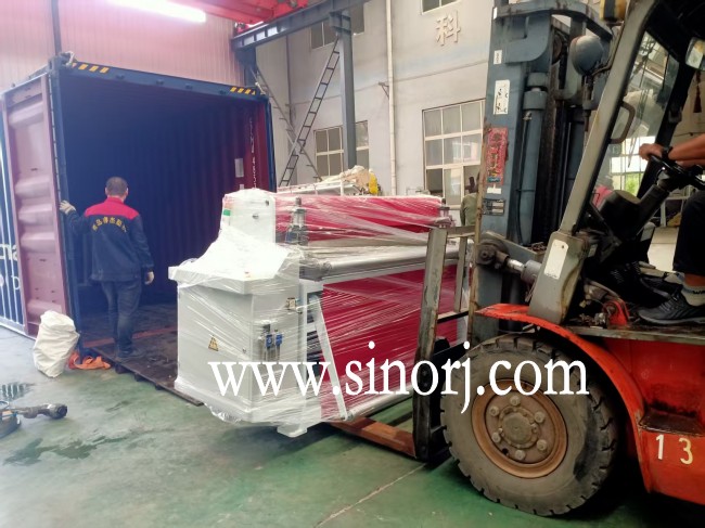 發(fā)往南美的lvt地板生產(chǎn)線(xiàn)spc地板設(shè)備裝柜中